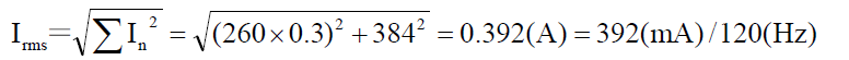 因?yàn)閷?shí)際電路中,紋波電流包含有各種頻率波形的紋波電流,所以對(duì)實(shí)際電路紋波電流的計(jì)算應(yīng)該由合成紋波電流Irms 得到: