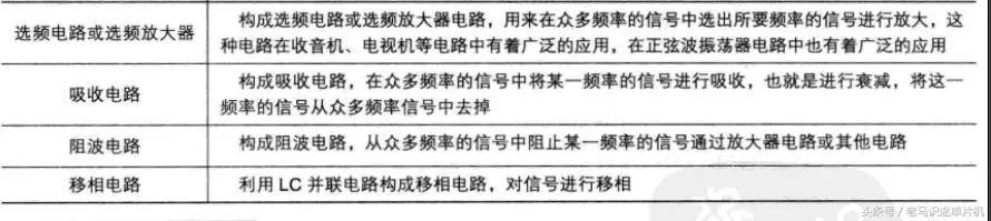 根據(jù)電路中電感器L和電容器C的連接方式不同,共有兩種基本的LC諧振電路:LC并聯(lián)諧振電路和LC串聯(lián)諧振電路。在放大器電路和其它形式的信號處理電路中,大量使用LC并聯(lián)諧振電路和LC串聯(lián)諧振電路。下圖是LC諧振電路的應(yīng)用說明: