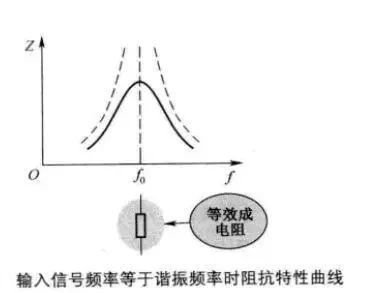 ①輸入信號頻率等于諧振頻率時(shí)阻抗特性曲線: